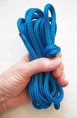For riding bridle-less or as a balance aid when riding bareback. Made with the stiff halter cord. (I can make it with the soft rope but the stiff cord gives you better control for positioning.)