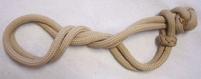This is a handy gadget to hang buckets or to use as a connector on lead ropes or reins as a snap alternative. It is the same construction as my button loop connectors for reins: 1/4" double braid rope with a crown knot button and a sliding ring knot for opening and closing the loop. I offer them here as a single item. I can make them any length but I normally make them about 14-15" long for use as a bucket hanger, about 10-12" long for a connector.